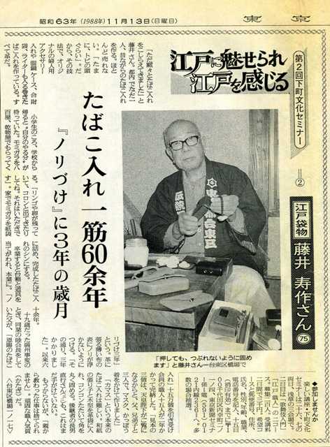 満州事変に際しては、「恩賜の煙草入れ」十五万個を十五軒の煙草入れ製造業者で分担して完納した。